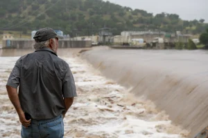 وفي كيرفيل السبت كانت مياه نهر غوادلوبي الهادئة عادة، مضطربة وسريعة.