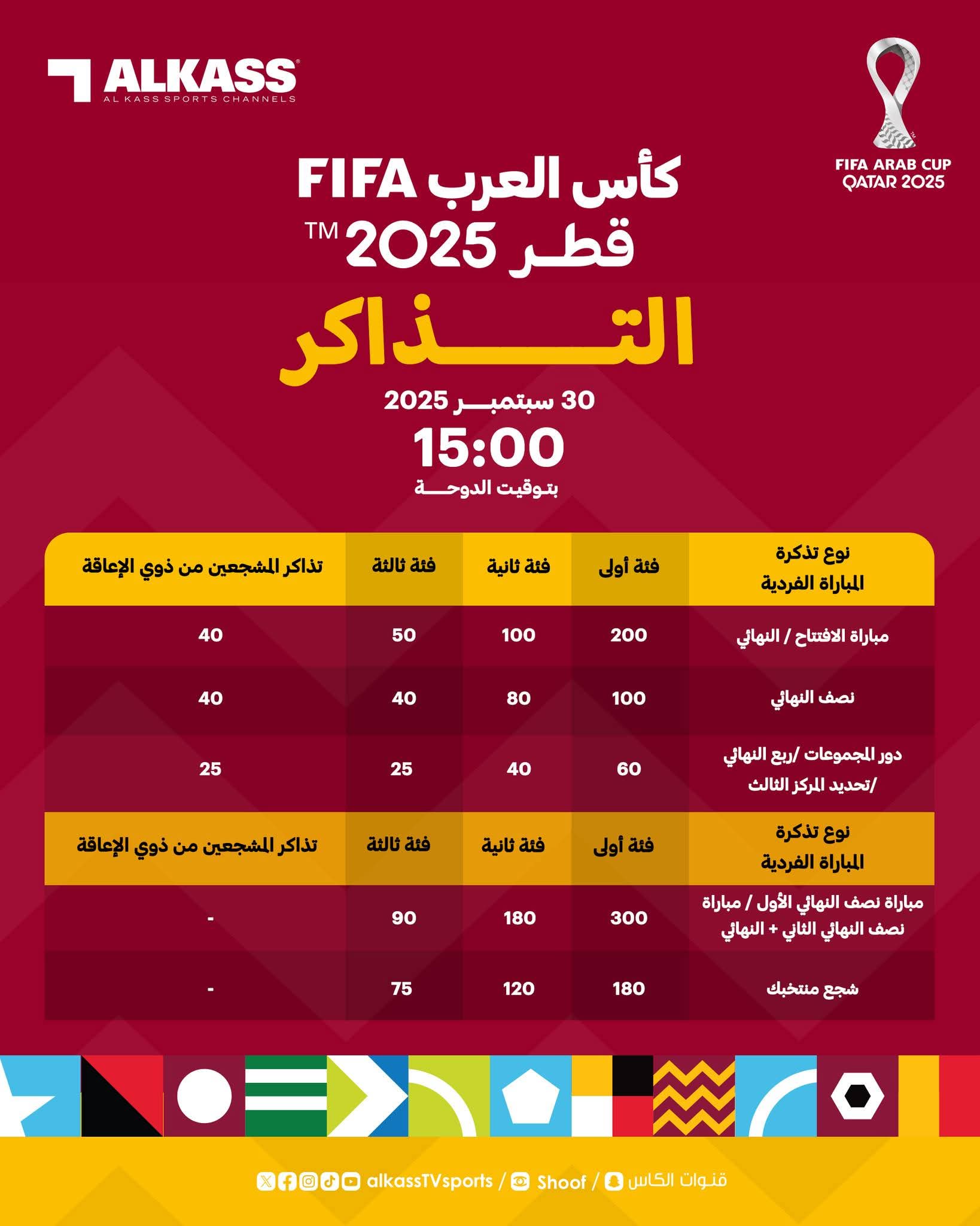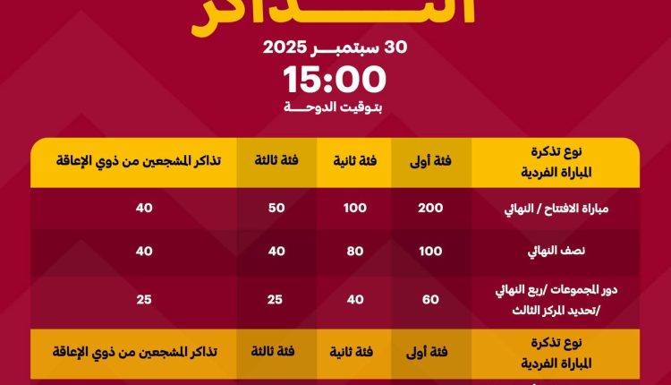 تعرف على أسعار وفئات تذاكر كأس العرب في قطر