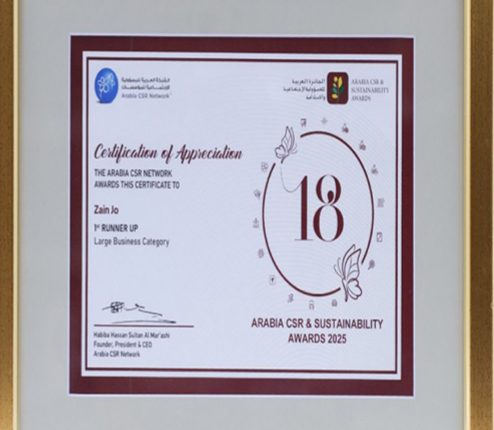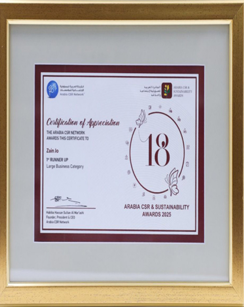 قبة الإخباري -حصدت شركة زين الأردن، جائزة الاستدامة والمسؤولية الاجتماعية العربية لعام 2025، عن فئة الشركات الكبرى، والتي منحتها إياها الجائزة العربية للمسؤولية الاجتماعية والاستدامة،