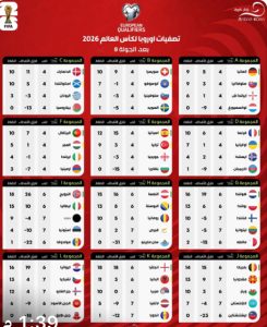 يسعد“العقبة اليوم الاخباري” ان يضع بين ايدي متابعيه تفاصيل وترتيب المنتخباتالاوروبية قبل جولتين من نهايه تصفيات كأس العالم ٢٠٢٦ لكرة القدم عن قارة أوروبا… إليكم جدول الترتيب علما ان اول وثاني كل مجموعة يتأهلان مباشرة كذلك.
