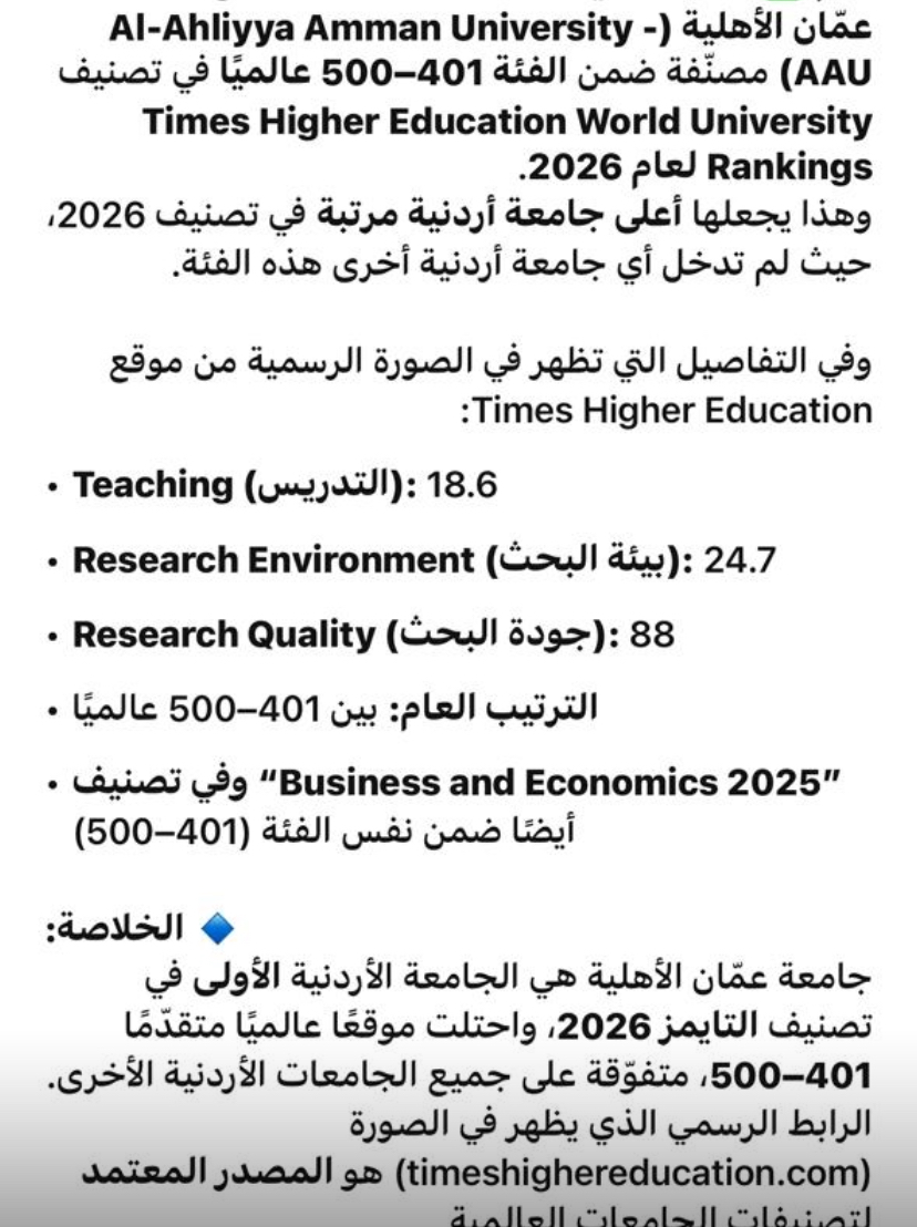 جامعة عمان الاهلية على لسان طلبتها.. وتصنيف التايمز