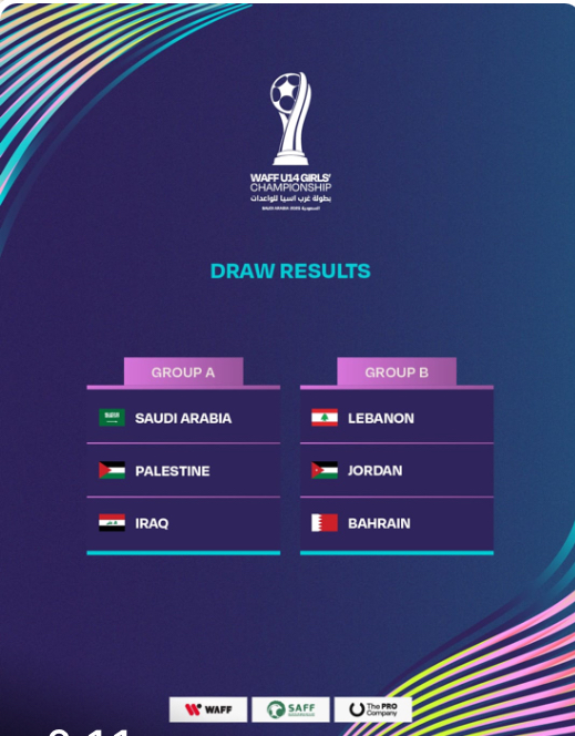 وجرى خلال قرعة البطولة التي أقيمت الخميس ٦ تشرين الثاني/ نوفمبر ٢٠٢٥ توزيع المنتخبات المشاركة على مجموعتين، ضمت الأولى: السعودية وفلسطين والعراق، فيما جاء في المجموعة الثانية منتخبات لبنان والأردن والبحرين.