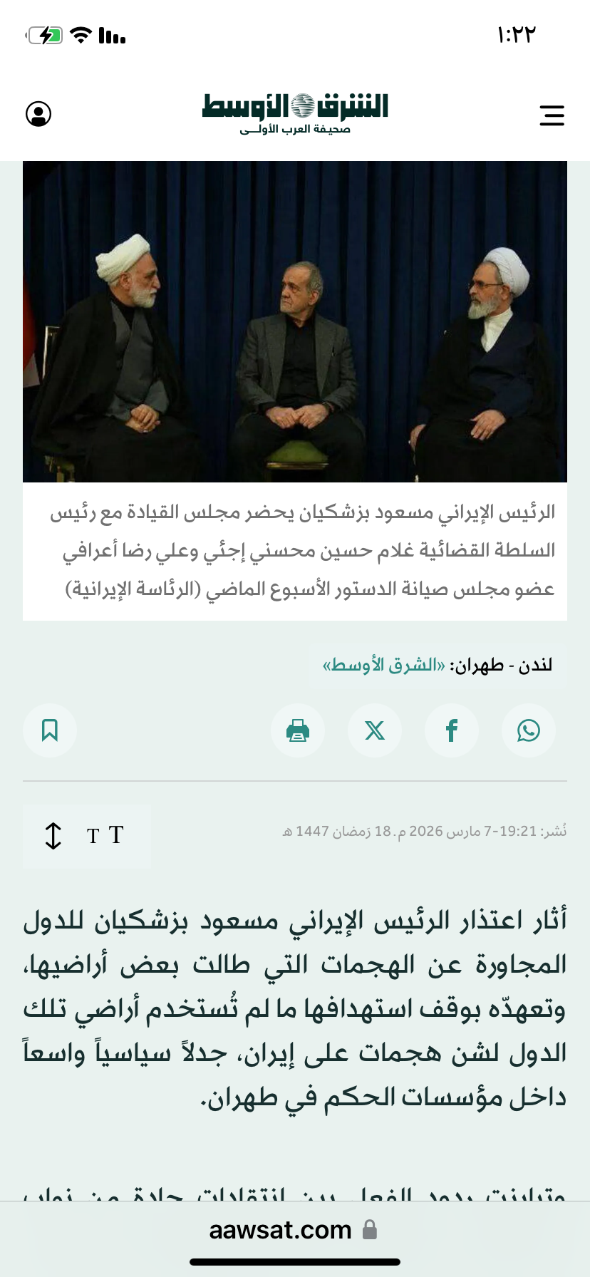 وكان بزشكيان قد قال في رسالة متلفزة إن مجلس القيادة المؤقت قرر عدم استهدافدول الجوار وعدم إطلاق صواريخ عليها، إلا إذا تعرضت إيران لهجوم من أراضي تلكالدول. وأضاف: «أعتذر باسمي وباسم إيران للدول المجاورة التي هاجمتها إيران»،مؤكداً أن طهران لا تنوي الاعتداء على أي دولة.
