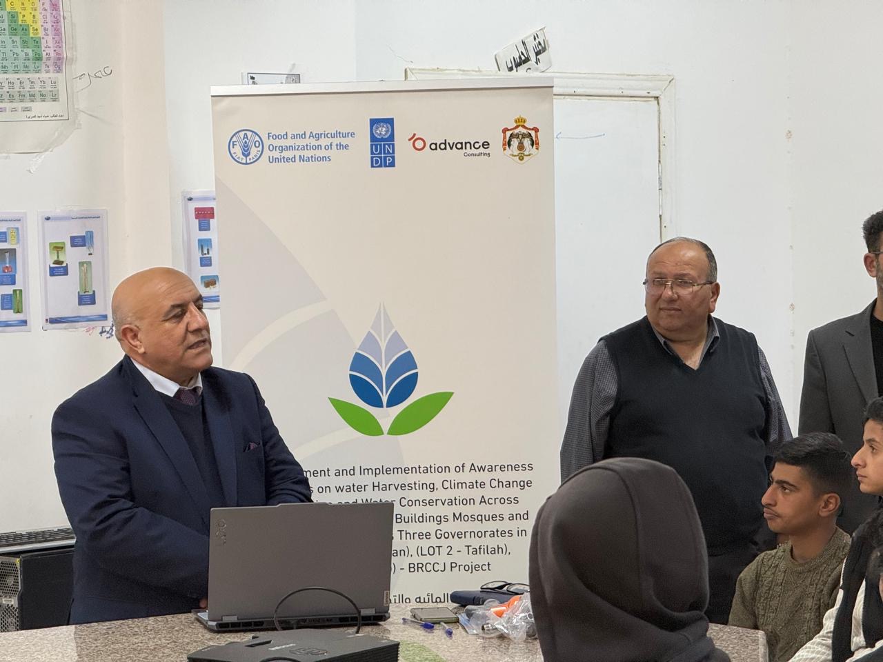 أطلقت منظمة الأغذية والزراعة للأمم المتحدة( الفاو)، وبالتنسيق مع وزارة التربيةوالتعليم، برنامجًا توعويًا حول حصاد مياه الأمطار وترشيد استهلاك المياه فيمحافظات الكرك والطفيلة ومعان، وذلك ضمن مشروع “بناء القدرة على التكيف معتغير المناخ من خلال تحسين كفاءة استخدام المياه في قطاع الزراعة (BRCCJ)”،والممول من صندوق المناخ الأخضر.