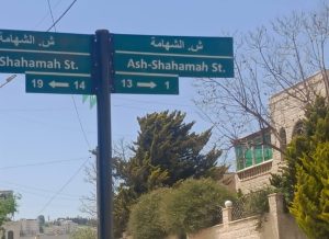 ومن الاسماء التي رصدتها في الشوارع وحمدت الله ان تذكروا اسم الشهيد في الجيشالاردني ملحم عازر الطعيمة اما الاسماء الاخرى التي لا تمت للمكان بأي صلة فهي(الاماني، الشهامة، حسن الحريري ،الفيصل وشارع الغدير ،الهيام ،يعلي بن امية ،ابواليسر الخليل، والتسامح ،وابو جعفر القارئ)