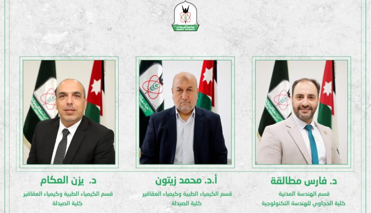 ويضم الفريق البحثي الدكتور فارس مطالقة من قسم الهندسة المدنية في كلية الحجاوي للهندسة التكنولوجية والدكتور محمد زيتون والدكتور يزن العكام من قسم الكيمياء الطبية وكيمياء العقاقير في كلية الصيدلة.