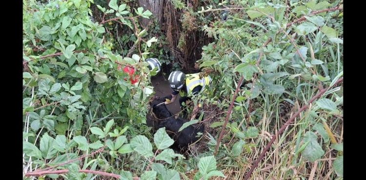رجال الإطفاء يقطعون أنبوبًا لإنقاذ عجل عالق في إنجلترا