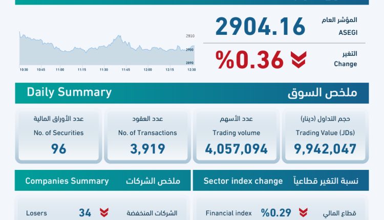 9.9 مليون دينار حجم التداول في بورصة عمان اليوم