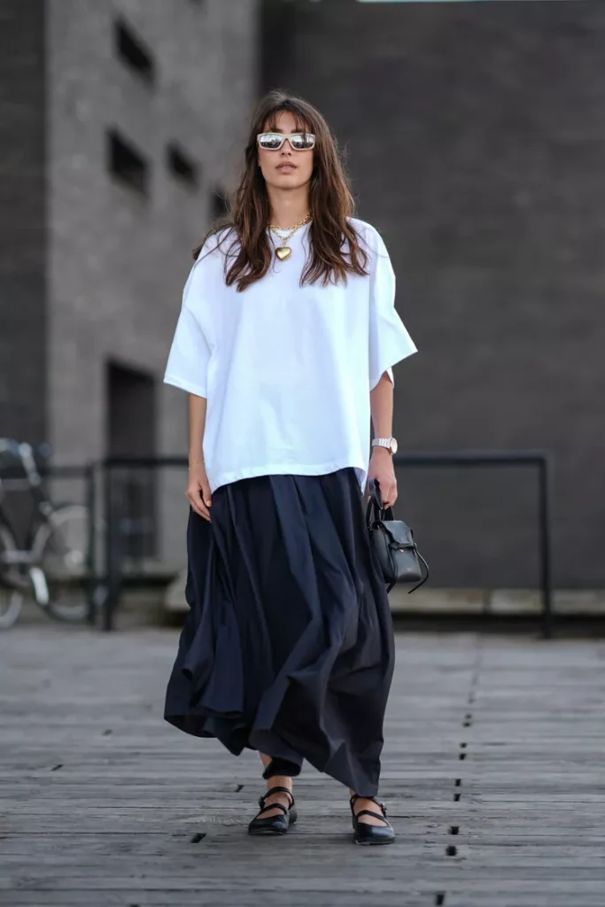 استخدمي التيشيرت كقطعة أساسية ترتكز عليها تصاميم مستوحاة من الطراز البوهيمي، حيث تضفي لمسة من الشخصية والحيوية، مما يجعل المظهر يعبر عن ذوق مميز في اختيار الملابس.