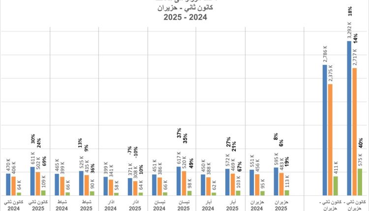 وحقق شهر حزيران وحده ارتفاعًا بنسبة 8% في عدد الزوار الدوليين ليصل إلى 595 ألف زائر، رغم التحديات الإقليمية، فيما بلغ عدد زوار الربع الثاني 1.78 مليون بنسبة نمو 23%.