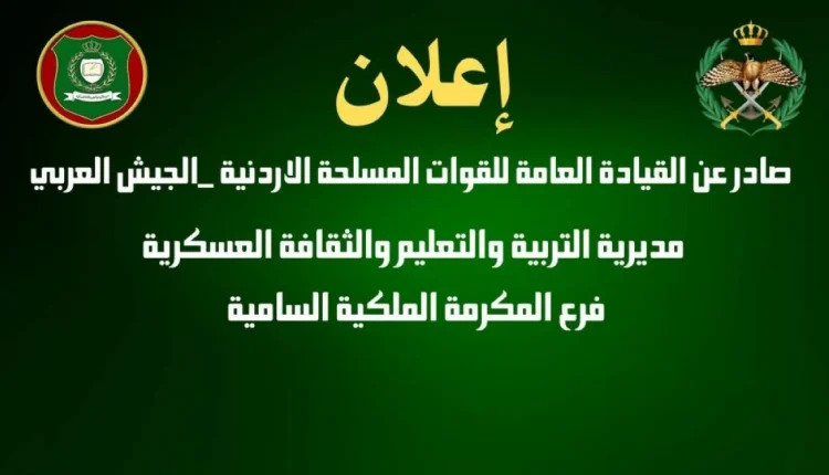 وأعلنت القيادة العامة للقوات المسلحة الأردنية – الجيش العربي، ممثلة بمديرية التربية والتعليم والثقافة العسكرية/ فرع المكرمة الملكية السامية، عن استحداث غرفة عمليات تحتوي على مقسم آلي ومنصة إلكترونية، وذلك للتسهيل على العاملين ورفقاء السلاح وذويهم من الراغبين بابتعاث أبنائهم وبناتهم على نفقة المكرمة الملكية السامية، مع اقتراب بدء العام الدراسي 2025/2026.