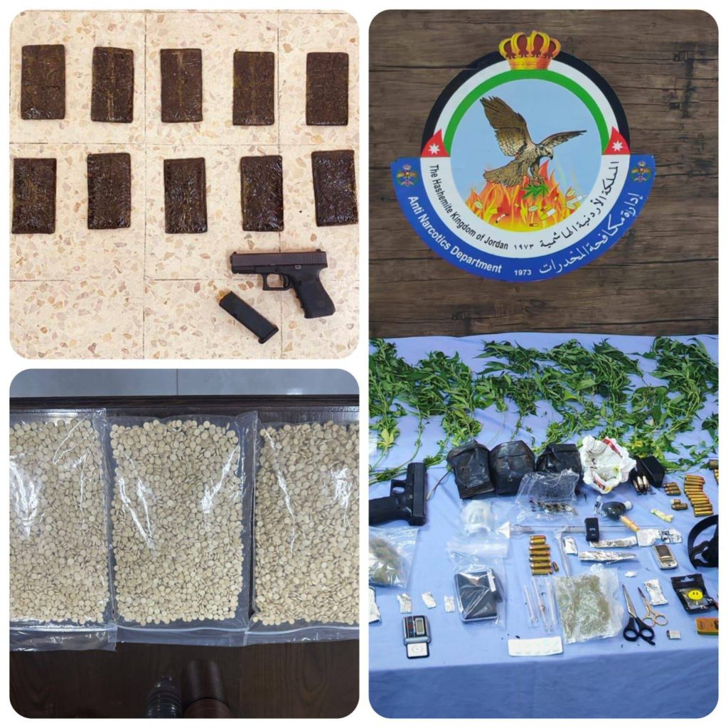 وفي قضايا الاتجار والتهريب أُلقي القبض في محافظة العقبة على تاجر للمخدرات بعد مقاومته للقوة وضبط بحوزته 10 كفوف حشيش وسلاح ناري ، فيما أُلقي القبض شرق العاصمة على مروجين اثنين وبحوزتهما 6 كفوف حشيش، ومروج آخر أيضا شرق العاصمة وبحوزته 4 كفوف حشيش.