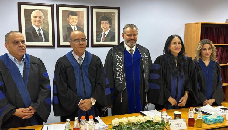وتكونت لجنة المناقشة، بإشراف الدكتورة منال المزاهرة وعضوية الاستاذ الدكتور علي نجادات والدكتورة هنا الصعوب ممتحنين داخليين، والدكتور عثمان الطاهات ممتحناً خارجياً.