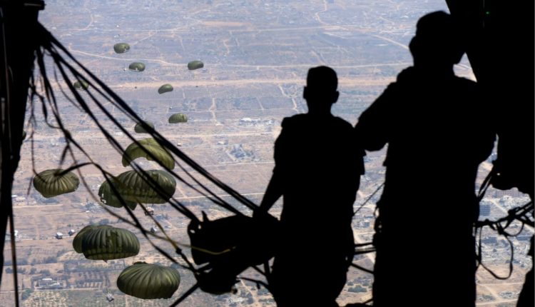 نفذت القوات المسلحة الأردنية، اليوم الاحد، عملية إنزال جوي إلى قطاع غزة، شاركت في العملية طائرات سلاح الجو الملكي الأردني وكل من جمهورية ألمانيا الاتحادية ودولة الإمارات العربية المتحدة وجمهورية اندونسيا، حيث تم إسقاط نحو (41) طناً من المواد الغذائية والإغاثية داخل القطاع.