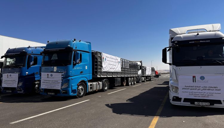 بتوجيهات ملكية سامية، سيرت الهيئة الخيرية الأردنية الهاشمية بالتنسيق مع القوات المسلحة الأردنية – الجيش العربي، اليوم الخميس، قافلة مساعدات أردنية غذائية إلى الأشقاء في الجمهورية العربية السورية.