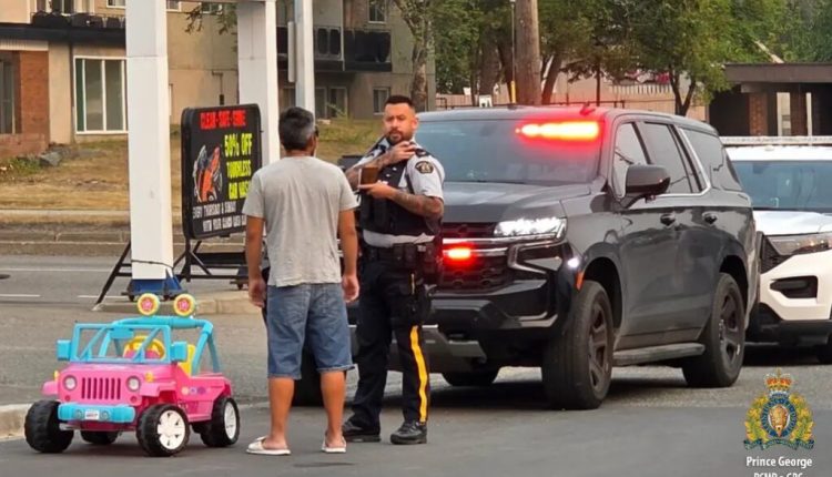 العقبة اليوم – أكدت الشرطة الكندية في شمال مقاطعة كولومبيا البريطانية أنها أوقفت رجلاً كان يقود ما بدا أنه سيارة أطفال وردية اللون من طراز “باربي جيب”، وهي مركبة لا تمت للقوانين المرورية بصلة من أي زاوية.